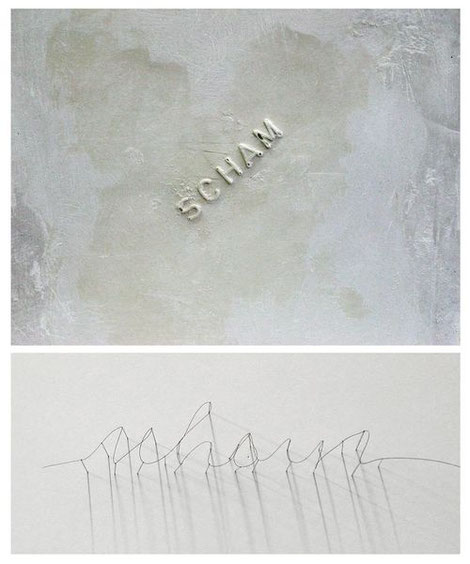 Scham/ Details, Gips/ Nadeln/ Pferdehaar, ca. 22,5 x 22,5/ b) 25 x 10 / 2014