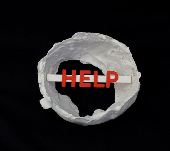 HELP, Gips/ Karton/ Holz, 14 x 15 x 7,5 / 2003