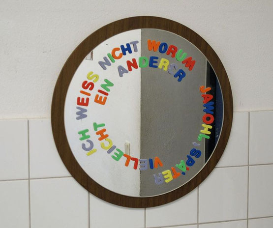 Jawohl, später, Spiegel auf Holz/ Kunststoffbuchstaben, Q 50 / 2011