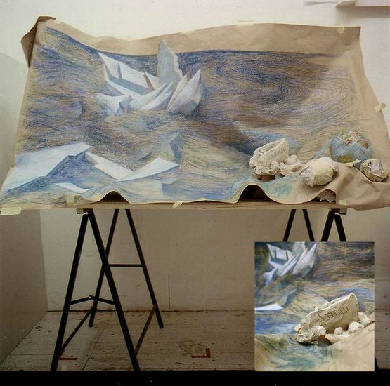 Weltkugel/ Ausschnitt, verschiedene Materialien, ca. 200 x 250 / 1996